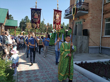 По окончании Божественной литургии состоялся крестный ход вокруг соборного храма.