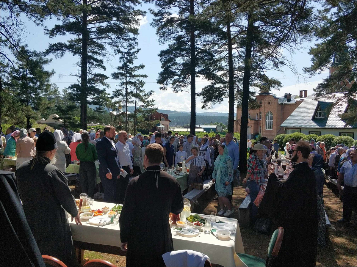 В завершение праздника насельницы обители пригласили участников богослужения на трапезу под открытым небом.