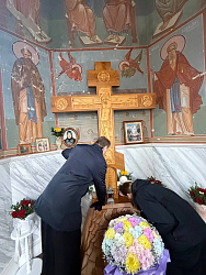 Перед отъездом в кафедральный город Владыка посетил часовню, где погребен схиархимандрит Зосима (Сокур) – основатель монастырей в Никольском, почитаемый донбасский старец. Здесь была совершена заупокойная молитва о упокоении души приснопамятного старца Зосимы.
