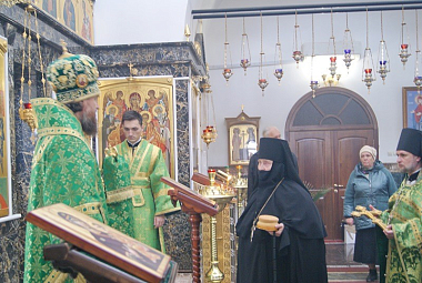 Его Высокопреосвященству сослужили клирики обители, а также иеромонах Спиридон (Федотов), настоятель Свято-Георгиевского храма хутора Ленина г. Краснодара, игумен Никон (Бачманов), настоятель храма Богоявления Господня пос. Пригородный г. Краснодара.