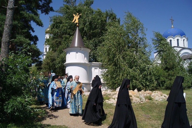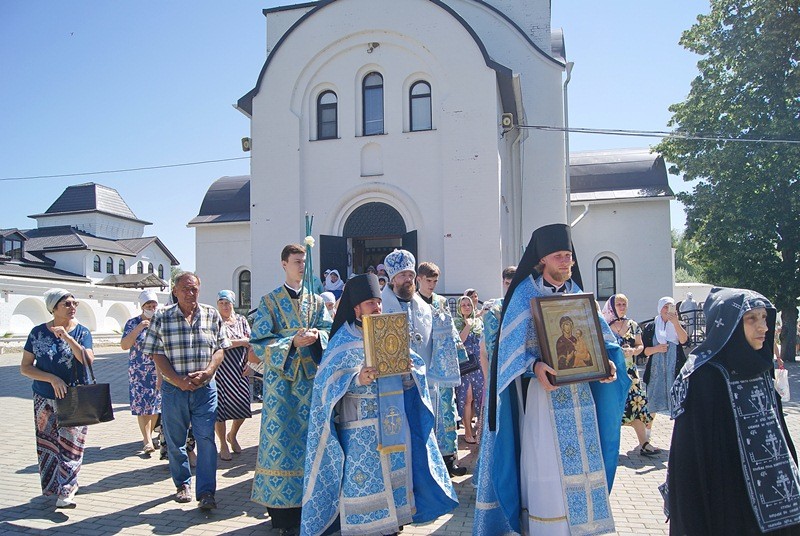 9 июля 2021 года, в праздник Тихвинской иконы Божией Матери, митрополит Екатеринодарский и Кубанский Григорий совершил Божественную литургию в Благовещенском храме и водосвятный молебен на источнике подворья женского монастыря в честь иконы Божией Матери «Всецарица».