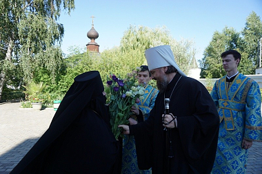 Затем владыка поздравил матушку игумению с сестрами, клир и богомольцев-мирян со значимым для монастыря праздником.