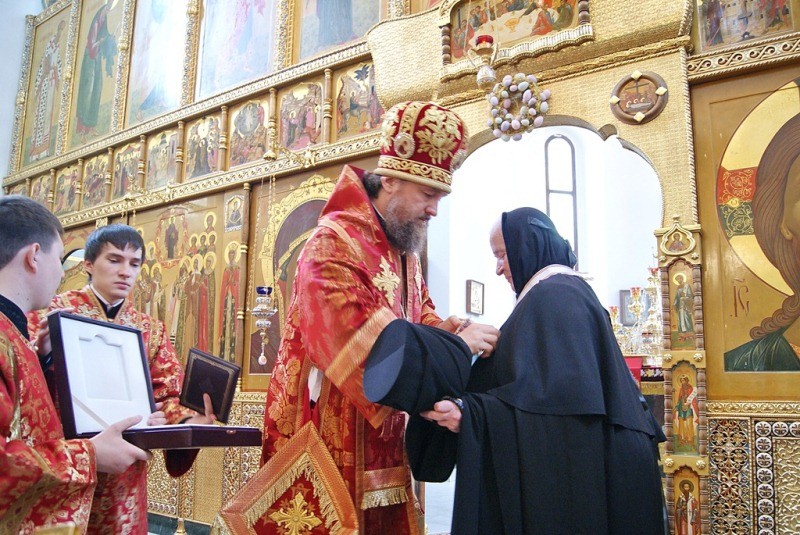 В заключение службы этого праздника, по благословению Святейшего Патриарха Кирилла митрополит Григорий вручил игумении Неонилле Патриаршую награду – Орден преподобной Ефросинии, великой княгини Московской, II степени. Этой награды матушка Неонилла удостоена за свои труды на благо Святой Церкви и в связи с прошедшим ее 80-летним юбилеем. Владыка поблагодарил игумению Неониллу за создание и благоукрашение монастыря и развитие монашеской жизни, пожелал Божией помощи в дальнейшем управлении обителью еще на многие годы. Матушка Неонилла поблагодарила за такую высокую оценку ее трудов.