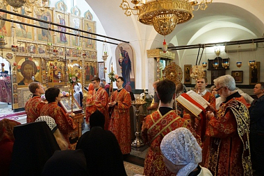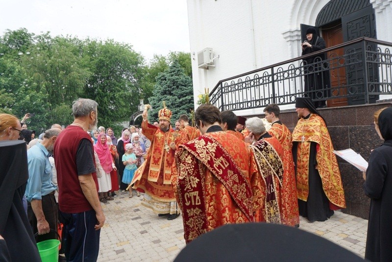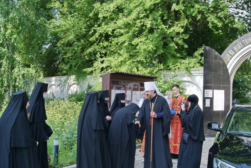 Это был первый визит нового митрополита в женский монастырь. Его Высокопреосвященству сослужили клирики монастыря: иеромонахи Тихон (Орлов), Вячеслав (Мишарин), Серафим (Кузнецов), Вениамин (Комоликов), иереи Никифор Некрылов и Владимир Зыков. Диаконский чин возглавил протодиакон Сергий Мрачко.