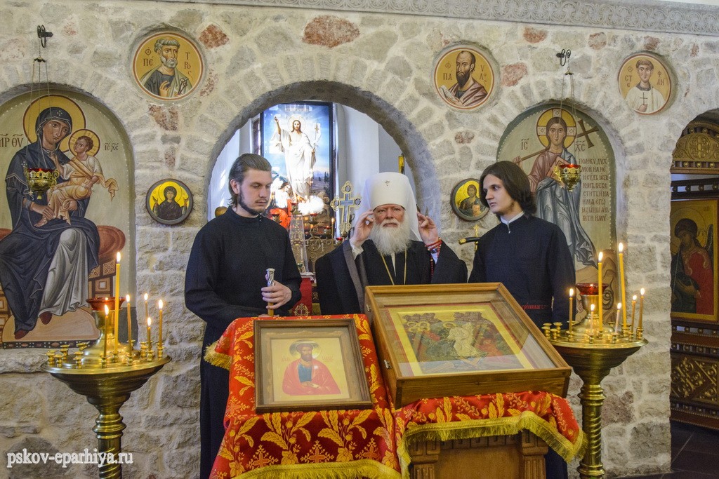 Архипастыря встречал наместник обители иеромонах Серафим (Козулин). В храме Святого первомученика и архидиакона Стефана глава Псковской митрополии поклонился образу Мирожской Божией Матери и другим святыням обители.