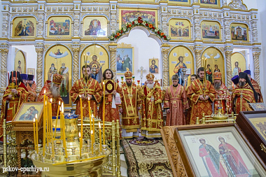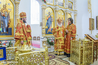 По отпусте Божественной литургии владыка митрополит возглавил праздничный молебен Господу Богу, Пресвятой Богородице, святым князьям Борису и Глебу, преподобному Никандру Пустынножителю и всем святым, от века благоугодившим Богу.