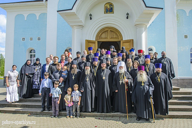 За богослужением молились игумении женских епархиальных обителей, прихожане и паломники, представители городской и районной Администраций, а также воинских структур.