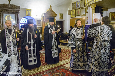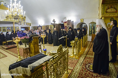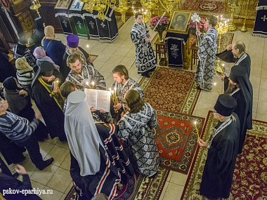20 февраля 2018 года, во вторник первой седмицы Великого поста, митрополит Псковский и Порховский Евсевий совершил чтение Великого покаянного канона преподобного Андрея Критского в Рождества Богородицы Снетогорском женском монастыре.