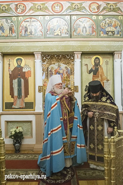 Его Высокопреосвященству сослужили наместник обители игумен Савва (Комаров) с братией обители в священном сане, а также местное духовенство.