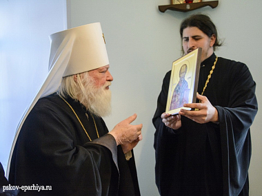 Его Высокопреосвященству сослужили старший клирик Елеазаровской обители иеромонах Серафим (Козулин) и настоятель подворья монастыря священник Антоний Савченко.