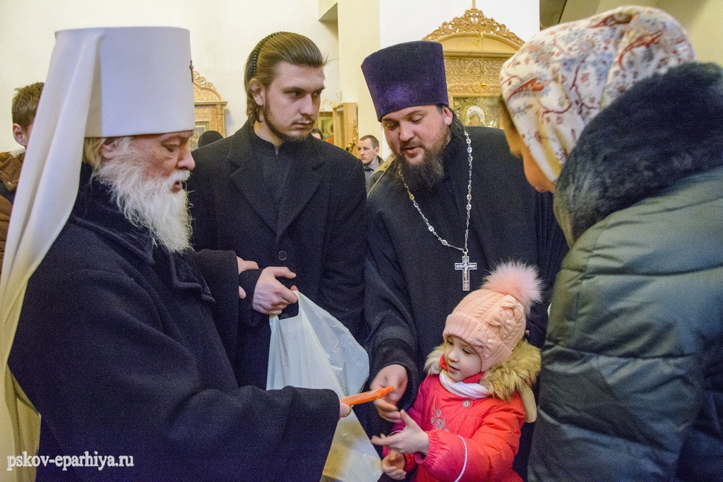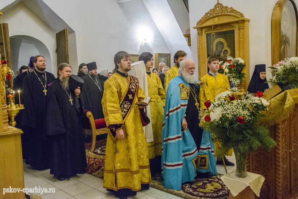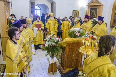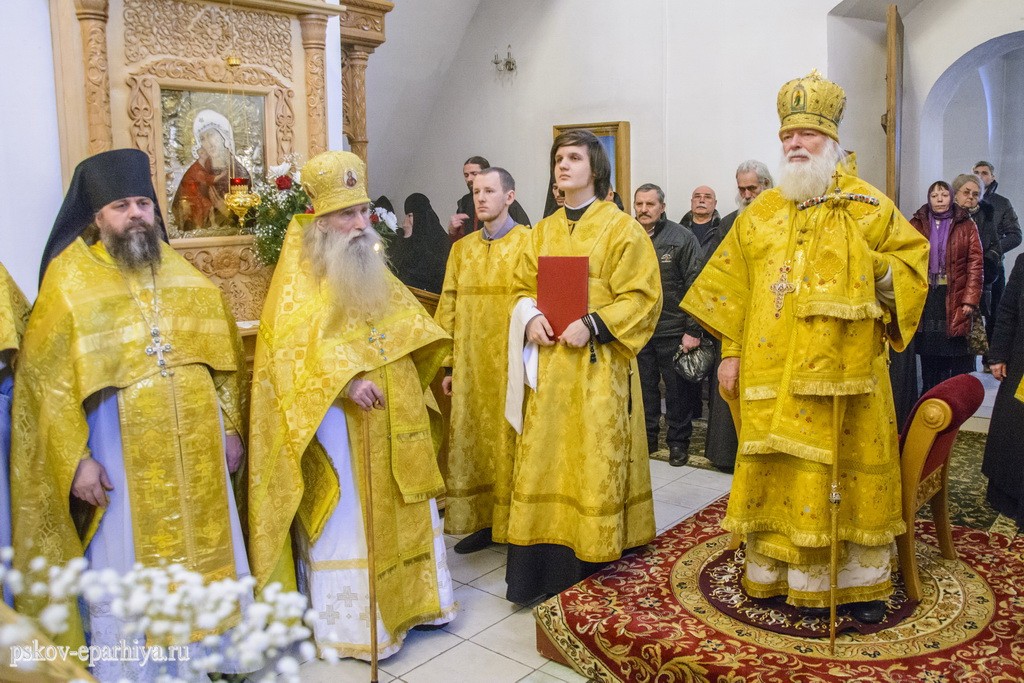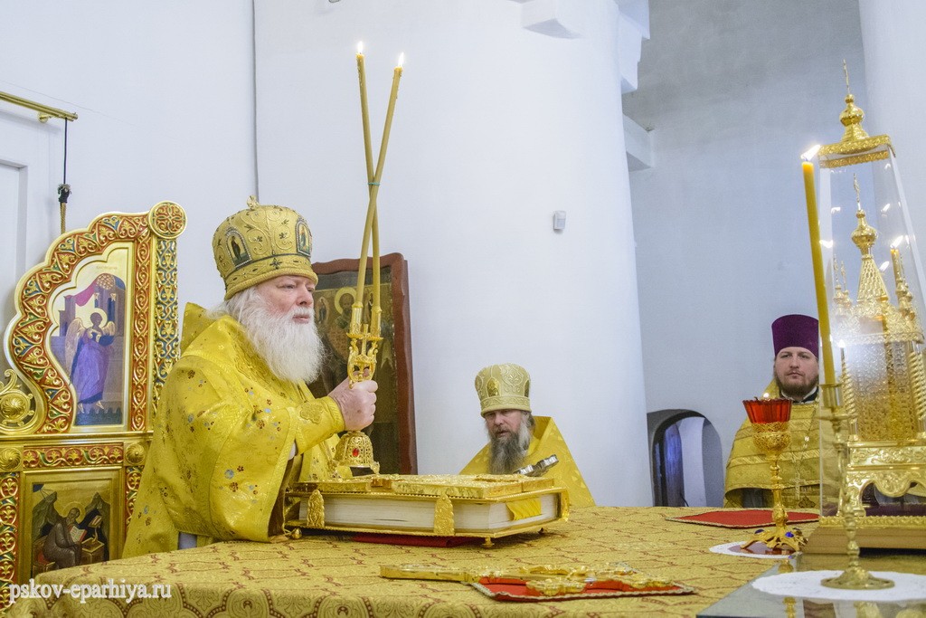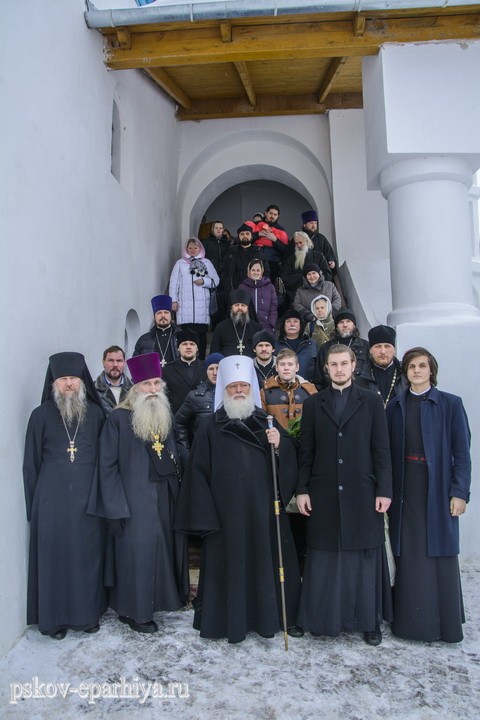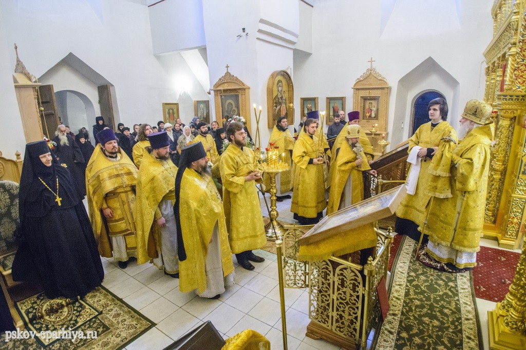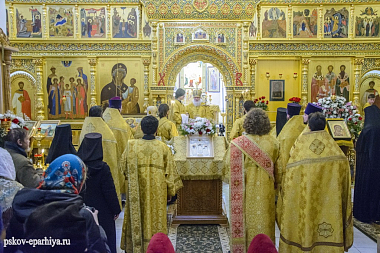 12 февраля 2018 года, в день памяти святых Вселенских учителей и святителей Василия Великого, Григория Богослова и Иоанна Златоустого, митрополит Псковский и Порховский Евсевий возглавил Божественную литургию в Трехсвятительском соборе Спасо-Елеазаровского женского монастыря.