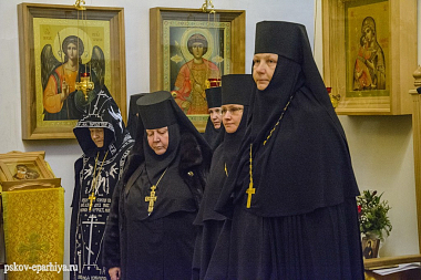 За богослужением молились настоятельница Спасо-Елеазаровской обители игумения Евфросиния (Головнева), настоятельница Спасо-Казанского монастыря игумения Маркелла (Павлова), настоятельница Рождества Богородицы женского монастыря игумения Татиана (Пашкова) с сестрами обителей и многочисленные паломники.