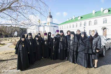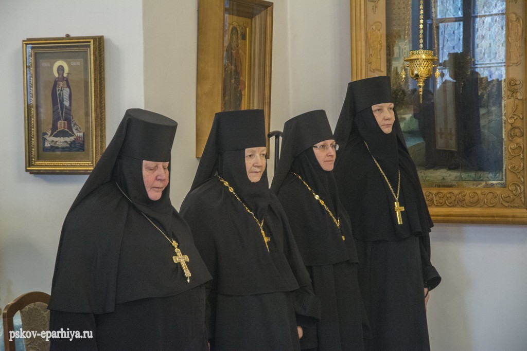 За Литургией молились настоятельница Спасо-Елеазаровской обители игумения Евфросиния (Головнева), настоятельница Спасо-Казанского монастыря игумения Маркелла (Павлова), настоятельница Рождества Богородицы Снетогорского женского монастыря игумения Татиана (Пашкова) с сестрами, первый заместитель губернатора Псковской области Вера Емельянова, председатель Псковского отделения Императорского православного палестинского общества Владислав Туманов, прихожане и паломники обители.