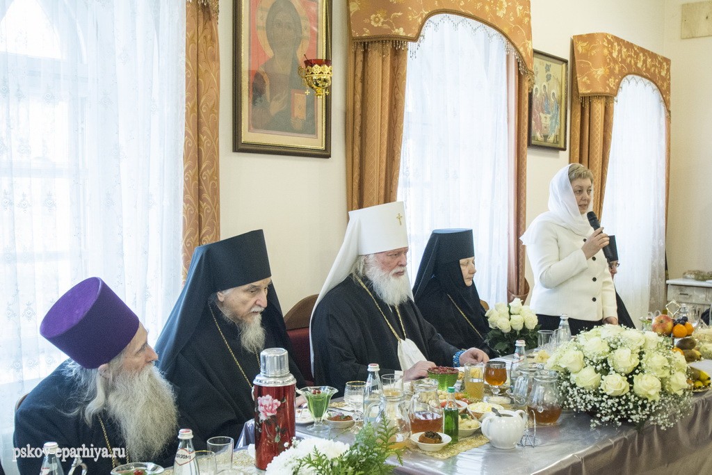 Обращаясь к присутствующим, Владыка отметил, что благодаря трудам матушки Елисаветы стало возможным возрождение Спасо-Елеазаровской обители, которая долгие годы безбожного гонения пребывала в руинах. Также Высокопреосвященнейший Владыка сказал: «Матушка Елисавета оставила пример богоугодной жизни: молитва и труд – вот что было спутниками ее подвига. Да упокоит ее Господь с лики праведных в жизни вечной!»