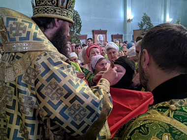 По окончании богослужения владыка Феодор поздравил молящихся, обратившись к ним с архипастырским словом: