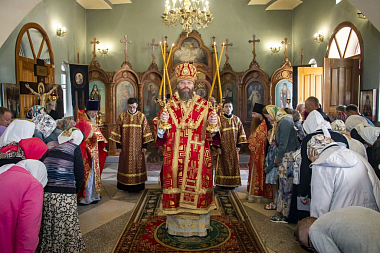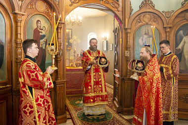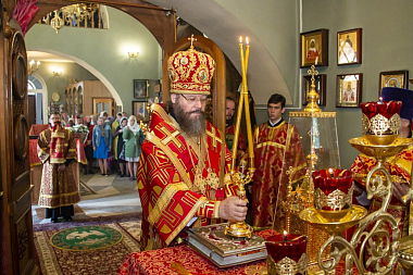 Его Высокопреосвященству сослужили настоятель монастыря игумен Пимен (Семилетов), клирики обители священник Александр Попов и иеродиакон Феодосий (Пронин), а также клирик Спасо-Преображенского кафедрального собора г. Тамбова диакон Константин Полозов.