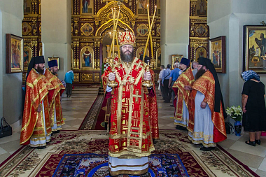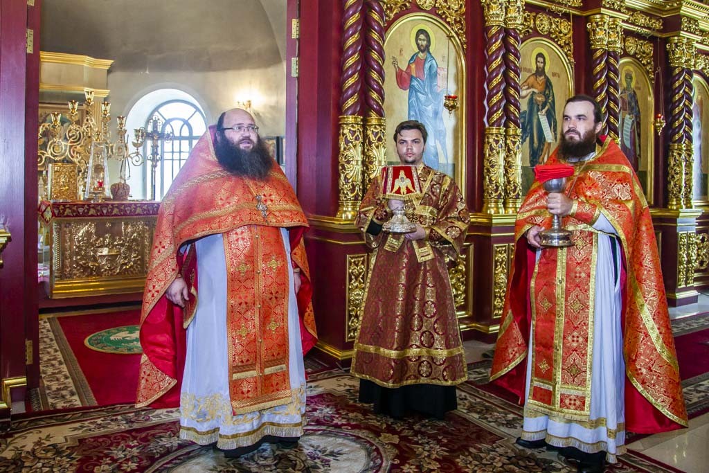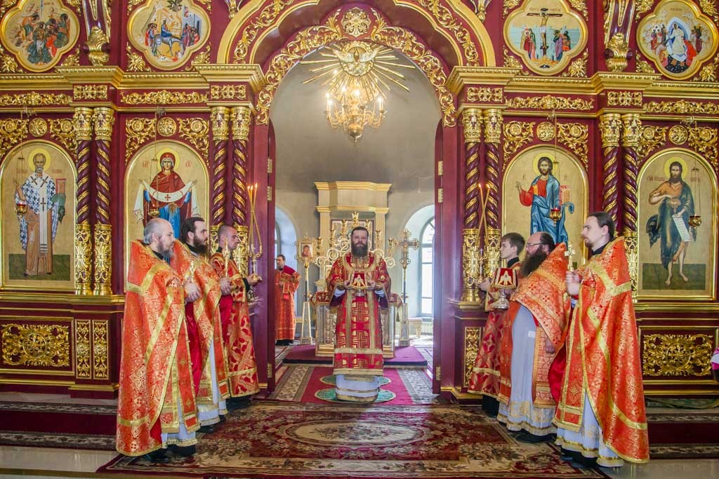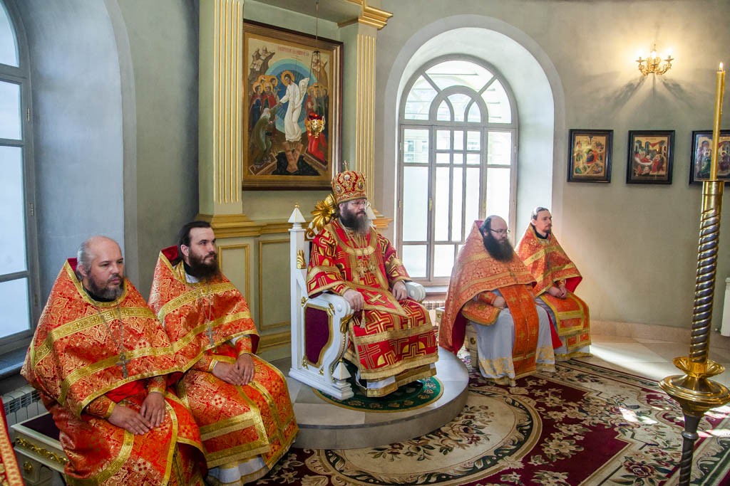 За Божественной литургией в Иоанно-Предтеченском храме обители Его Высокопреосвященству сослужили клирики и насельники обители в священном сане: игумен Серафим (Тюлюкин), иеромонах Паисий (Буй), священники Алексий Хвостунков и Виталий Щербаков, иеродиакон Лука (Попов), – а также клирик Спасо-Преображенского кафедрального собора Тамбова диакон Иулиан Свиридов.