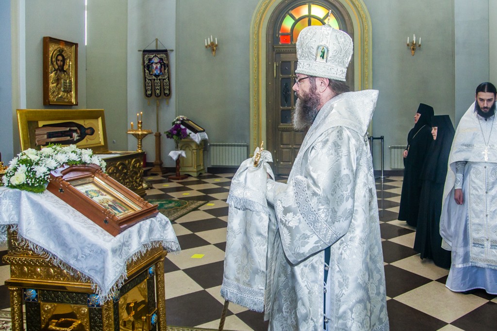 28 мая 2020 года, в праздник Вознесения Господня, митрополит Тамбовский и Рассказовский Феодосий в сослужении духовенства совершил Божественную литургию в соборном храме Вознесенского женского монастыря Тамбова.