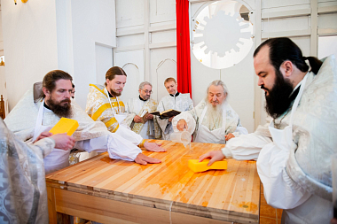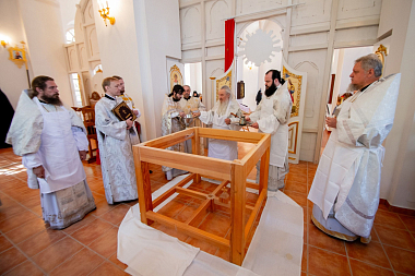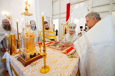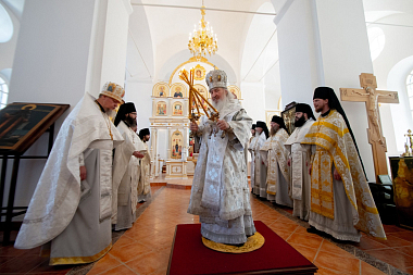 В завершение глава Татарстанской митрополии поздравил духовенство, настоятеля и братию с престольным праздником обители и освящением обновленного храма: