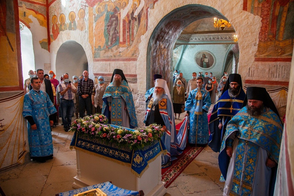 28 августа 2020 года, в праздник Успения Пресвятой Владычицы нашей Богородицы и Приснодевы Марии, митрополит Казанский и Татарстанский Феофан совершил Божественную литургию в Успенском соборе Свияжского Богородице-Успенского мужского монастыря.