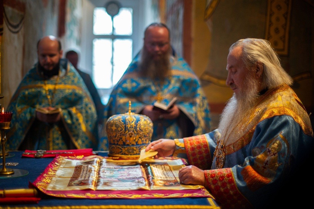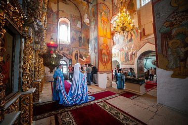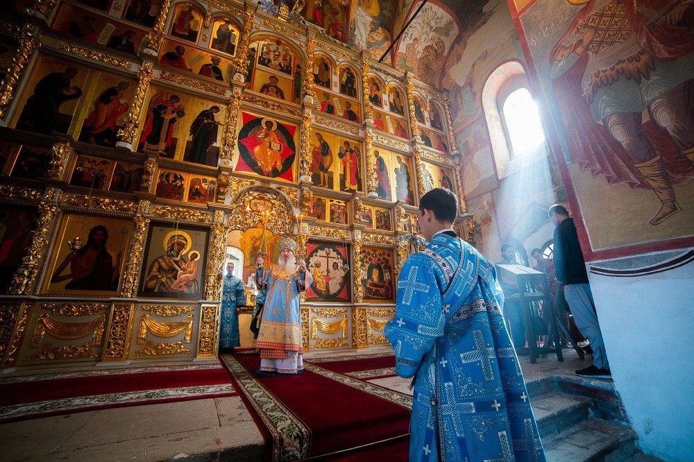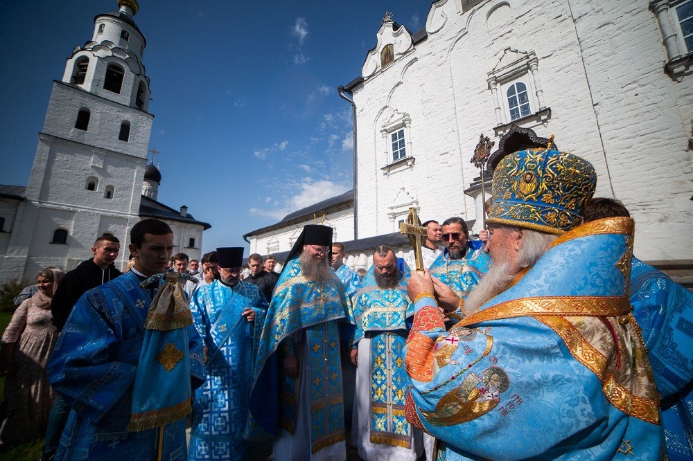 В завершение богослужения правящий архиерей поздравил наместника, братию и всех верующих с престольным праздником древнего собора Свияжской обители.