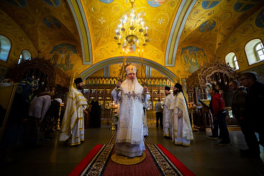 За Литургией Его Высокопреосвященству сослужили настоятель Введенского Кизического мужского монастыря игумен Пимен (Ивентьев), клирики Зилантова монастыря протоиереи Владимир Луценко и Сергий Дятлов.