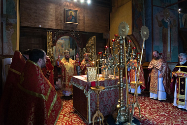 По окончании Литургии было совершено молебное славление святым царственным страстотерпцам, после чего митрополит Ферапонт поздравил духовенство и прихожан с днем памяти последнего российского императора и его августейшей семьи.