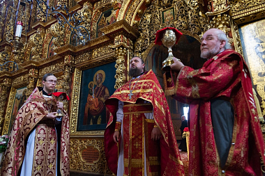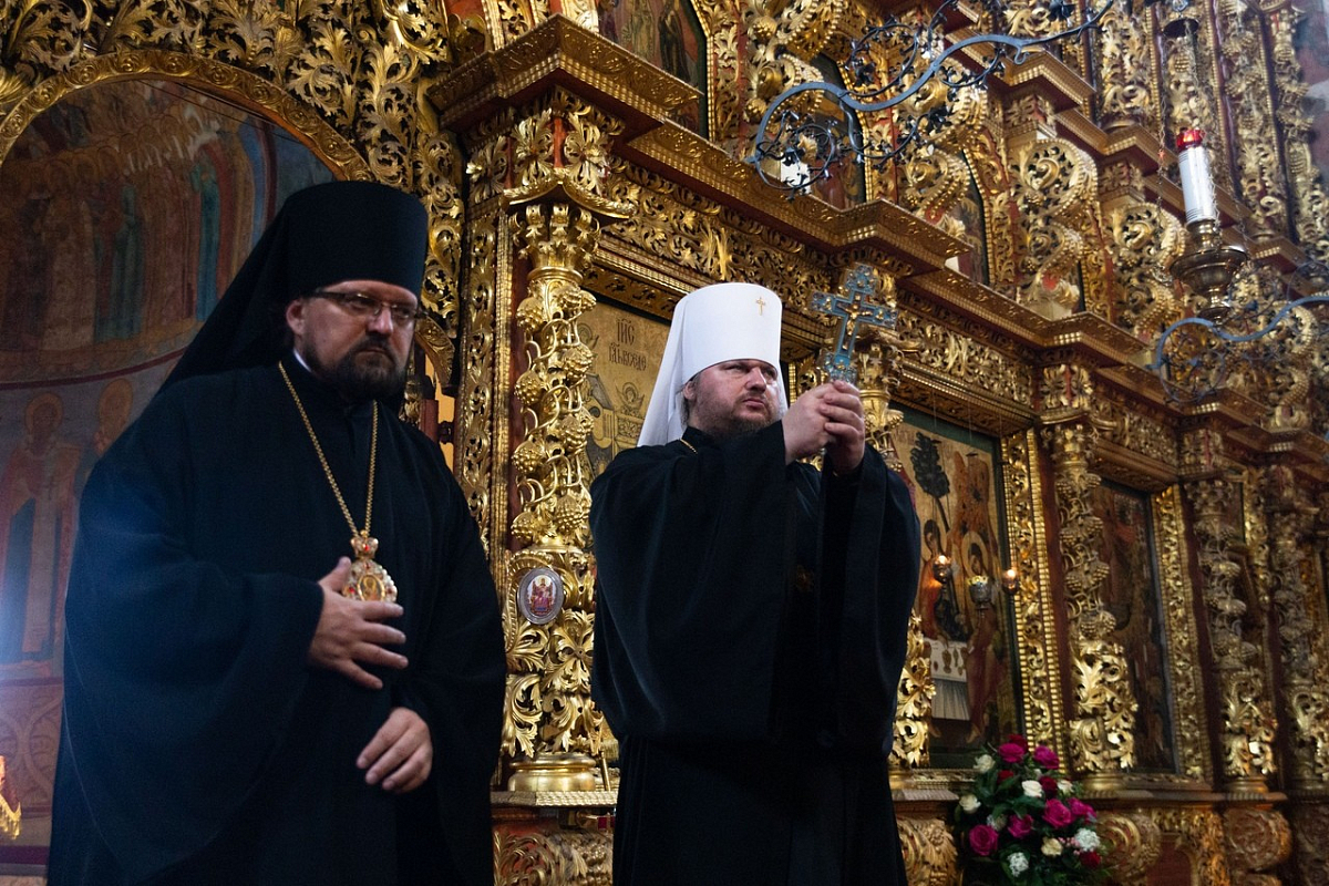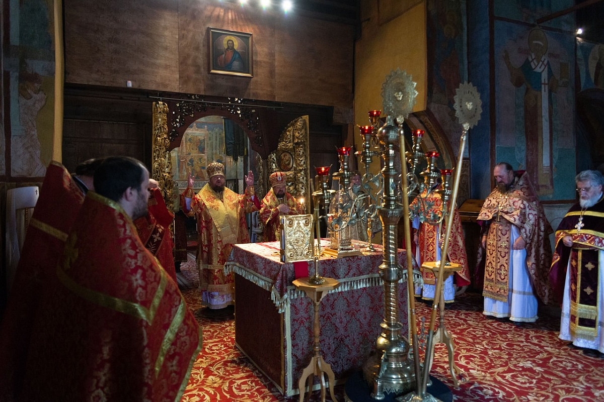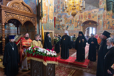 В Троицком соборе обители владыкам сослужили: наместник обители игумен Петр (Ерышалов), игумен Дмитрий (Нетёсин), протоиереи Игорь Шашков, Андрей Ирзаев и Максим Рихтер, иеромонахи Филипп (Дюкарев), Тимон (Яковлев) и Никон (Касярум), иерей Александр Поликарпов.