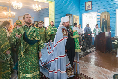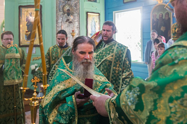 Высокопреосвященному владыке сослужили: благочинный церквей Буйского района протоиерей Аркадий Климов, настоятель Благовещенского храма с. Ферапонт иеромонах Михаил (Абрамов), иеромонах Адриан (Киселев), иерей Андрей Куков, духовник обители иерей Вил Кенжибаев.