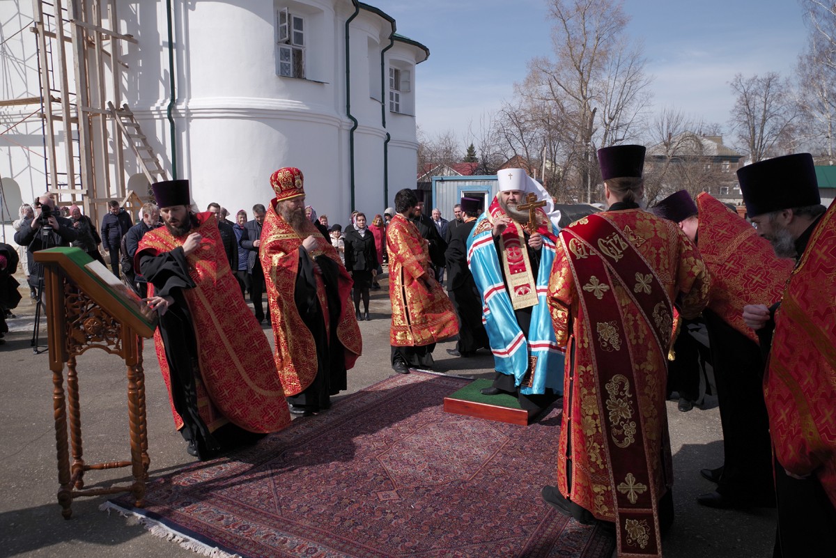 «Сегодня на Балахнинской земле совершается поистине историческое событие – освящение крестов и куполов главного храма Покровской обители. И, как некогда был умерщвлен Христос, а потом воскрес из мертвых, так и эта обитель после разрушения и поругания возрождается и будет радовать своими куполами, благословлять святыми крестами, чтобы мир и Божие благословение пребывали со всеми жителями города Балахны».