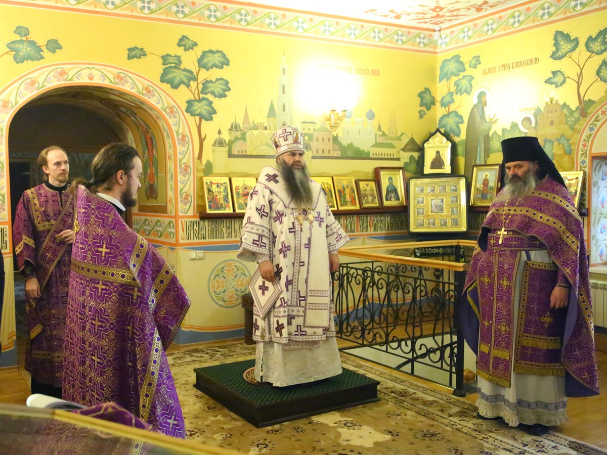 Правящему архиерею сослужили настоятель обители архимандрит Тихон (Затёкин) и другие клирики Нижегородской епархии.