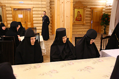 Во встрече приняли участие настоятельница монастыря игумения Филарета (Шевченко), настоятельница архиерейского подворья возрождающегося Арзамасского Алексеевского Новодевичьего монастыря монахиня Феогноста (Гончарова).