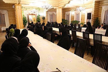 Беседа была посвящена месту монашества в современном мире. Митрополит Нижегородский и Арзамасский Георгий является председателем комиссии Межсоборного присутствия по организации жизни монастырей и монашества. Тема монашеского делания неоднократно поднималась на общественных форумах Православной Церкви, в том числе и на минувших Рождественских чтениях. Владыка рассказал сестрам о работе над документами, которые определяют жизнь насельников монастырей.
