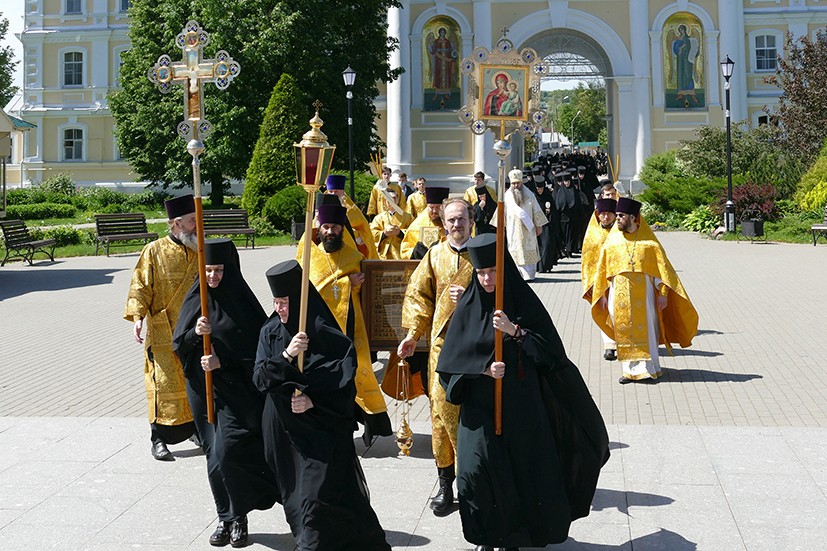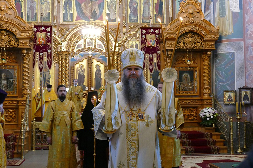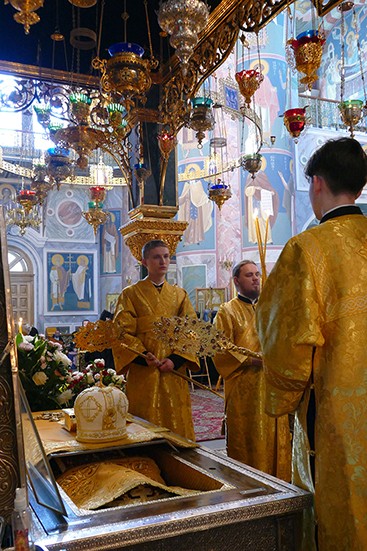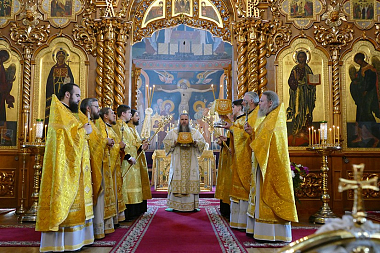 Его Высокопреосвященство возглавил в Троицком соборе обители молебен с акафистом преподобному Серафиму Саровскому, параклис Божией Матери и Божественную литургию.