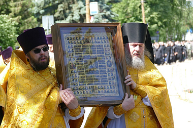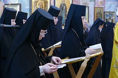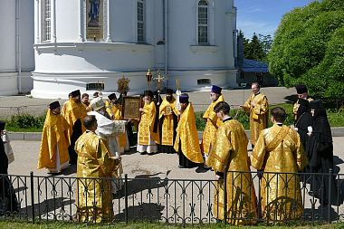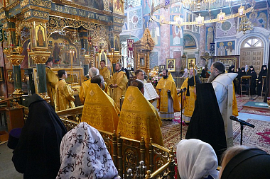 По окончании богослужения настоятельница монастыря игумения Сергия (Конкова), обратившись со словами приветствия к правящему архиерею, поблагодарила его от всей монастырской семьи за украшение престольного праздника монастыря своим участием в нем.