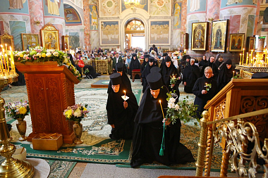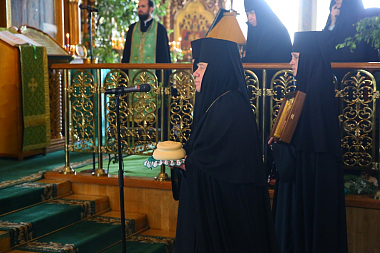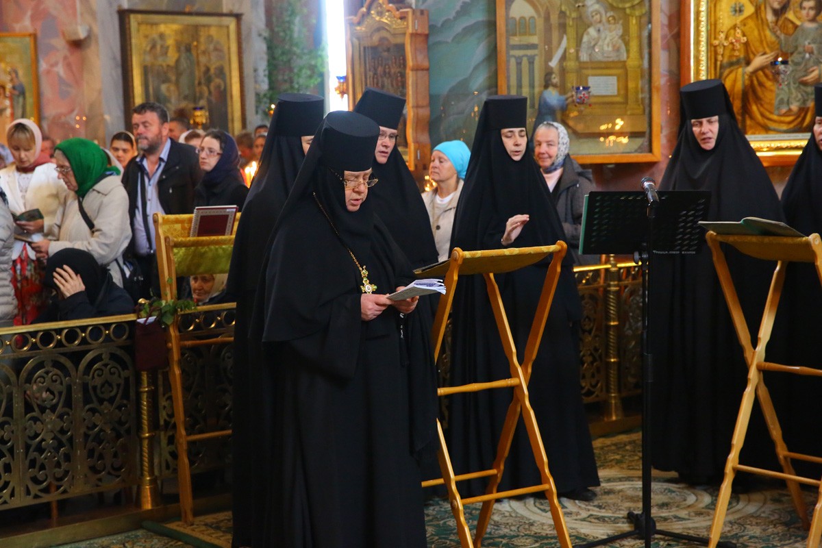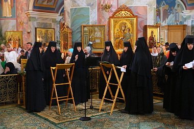 Вместе с многочисленными паломниками и прихожанами в храме молились настоятельница монастыря игумения Сергия (Конкова) и сестры обители.