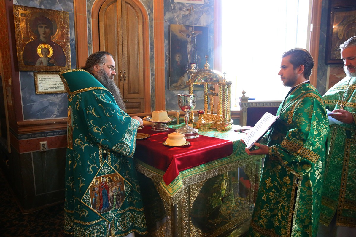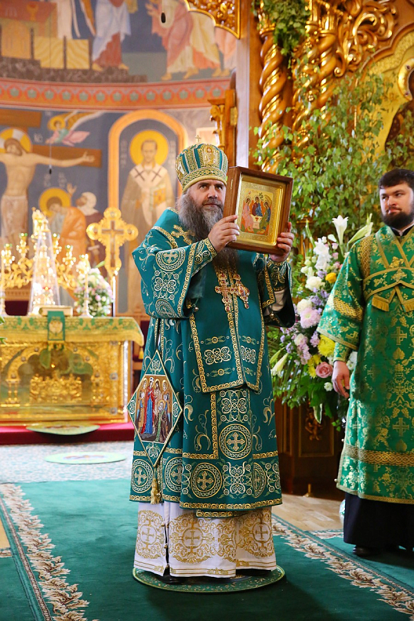 В завершение настоятельница монастыря преподнесла владыке заздравную просфору и икону Святой Троицы.