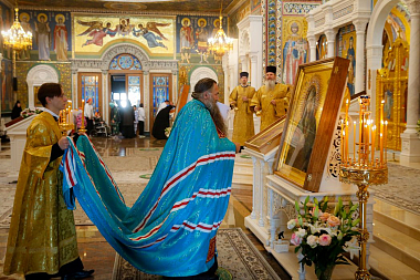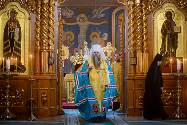 По окончании литургии игумения Сергия от всей монастырской семьи выразила благодарность правящему архиерею за совершенное богослужение в день празднования иконы Божией Матери «Неопалимая Купина» и преподнесла ему заздравную просфору.