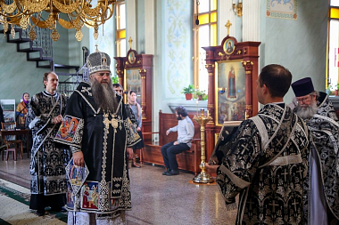 Богослужение состоялось в соборе в честь Воздвижения Честного и Животворящего Креста Господня.