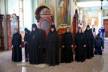За Литургией вместе с прихожанами молились настоятельница монастыря игумения Филарета (Гажу) и сестры обители.