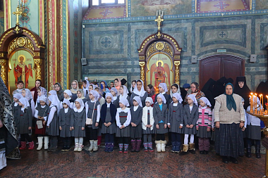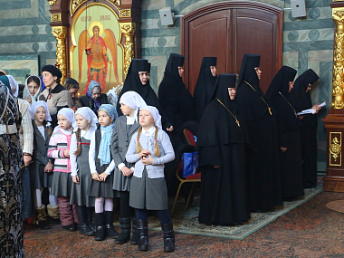 За богослужением вместе с многочисленными прихожанами молились настоятельница Свято-Троицкого Серафимо-Дивеевского монастыря игумения Сергия (Конкова), настоятельница Крестовоздвиженского монастыря Нижнего Новгорода игумения Филарета (Гажу), настоятельница Арзамасского Свято-Николаевского монастыря игумения Филарета (Шевченко), настоятельница Покровского монастыря в с. Лукине Богородского района игумения Гавриила (Суханова), настоятельница архиерейского подворья Арзамасского Новодевичьего Алексия, человека Божия, монастыря монахиня Феогноста (Гончарова), настоятельница архиерейского подворья Мало-Пицкого Всехскорбященского монастыря инокиня Филарета (Андрейко), настоятельница нижегородского архиерейского подворья храма в честь Святых Кирилла и Мефодия инокиня Алипия (Андрейко), а также учащиеся Саровской православной гимназии имени преподобного Серафима Саровского и их родители.