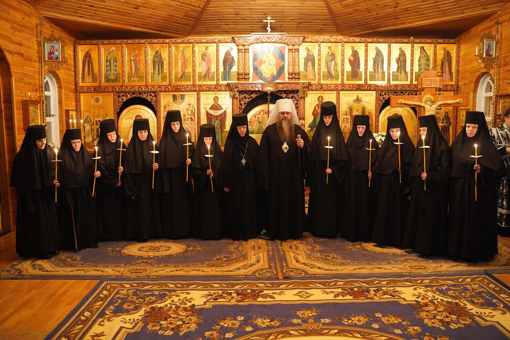 Его Высокопреосвященство, вручив новопостриженных сестер настоятельнице монастыря игумении Сергии (Конковой) как духовной матери, произнес слова поздравления и назидания инокиням: «Вы призваны к тому, чтобы больше не говорить: “Я хочу, мне надо”. Вместо этого вы должны на всё отвечать: “Как благословите”. Очень важно жить по благословению в послушании. Ибо жизнь по своей воле не даст вам духовного возрастания».
