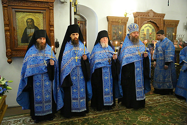Правящему архиерею сослужили настоятель монастыря архимандрит Александр (Лукин), благочинный Нижегородского округа иерей Александр Гимоян, руководитель административного секретариата Нижегородской епархии иерей Александр Тенькаев и другие клирики епархии.
