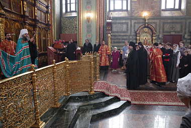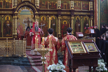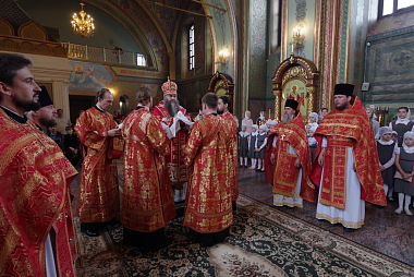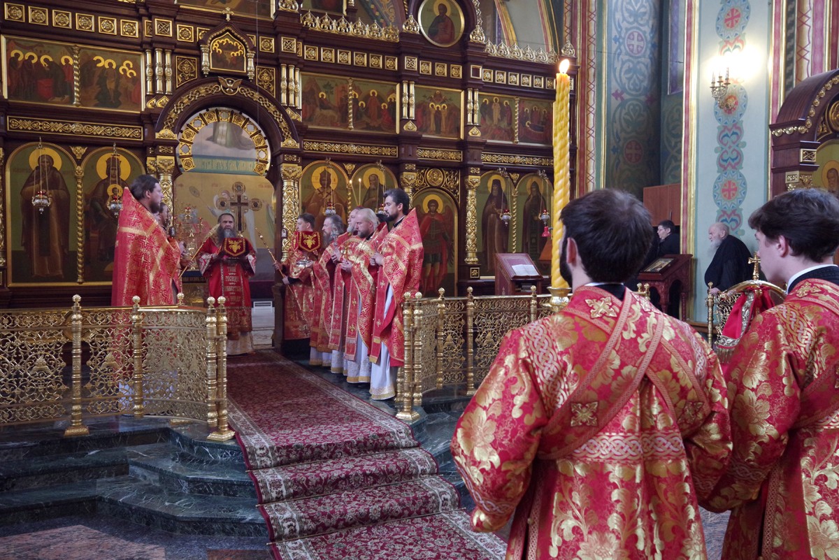 Правящему архиерею сослужили благочинный Саровского округа протоиерей Александр Долбунов, настоятель монастыря игумен Никон (Ивашков), руководитель Отдела образования Нижегородской епархии протоиерей Евгений Худин и другие клирики епархии.