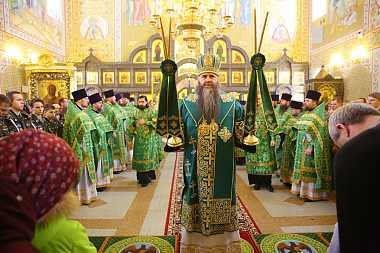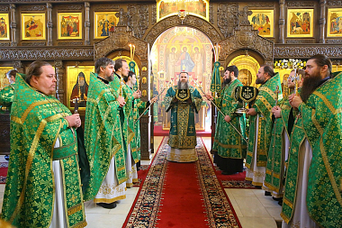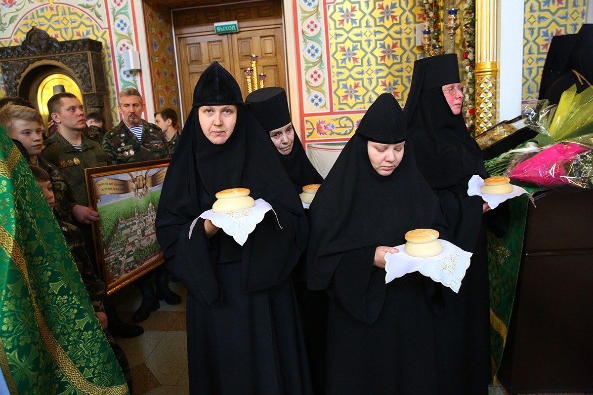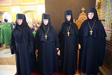 За богослужением молились настоятельница Иверского Выксунского монастыря игумения Антония (Миронова), настоятельница Абабковского Николаевского Георгиевского женского монастыря игумения Никона (Желякова), настоятельница Дальне-Давыдовского монастыря игумения Руфина (Тарасенко) и старшая сестра возрождающегося Свято-Троицкого Островоезерского монастыря монахиня Серафима (Беляева).