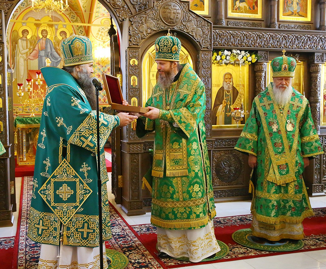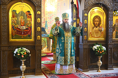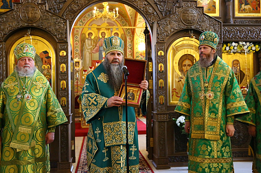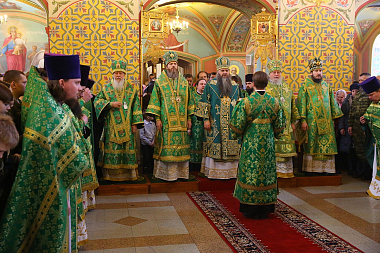 В завершение нижегородский архипастырь поздравил епископа Варнаву с днем тезоименитства и преподнес имениннику образ преподобного Сергия Радонежского.