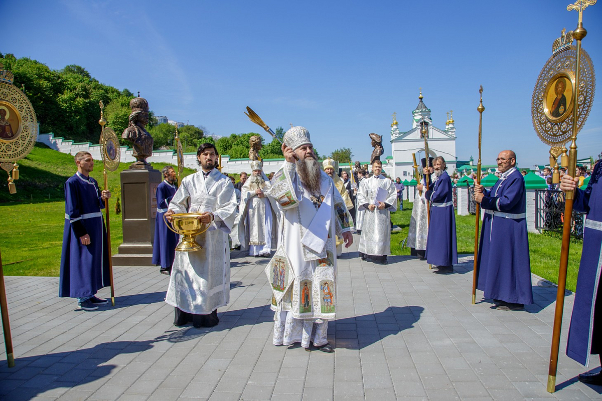 В этот день митрополит Нижегородский и Арзамасский Георгий возглавил Божественную литургию в Вознесенском соборе обители.
