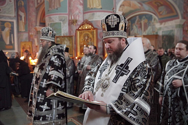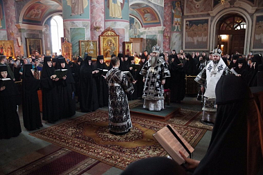 В Троицком соборе обители правящему архиерею сослужили викарий Нижегородской епархии епископ Дальнеконстантиновский Филарет, благочинный Саровского округа протоиерей Александр Долбунов, руководитель Административного секретариата епархии иерей Александр Тенькаев, старший священник Дивеевского монастыря иерей Владимир Каргин и другие клирики епархии.