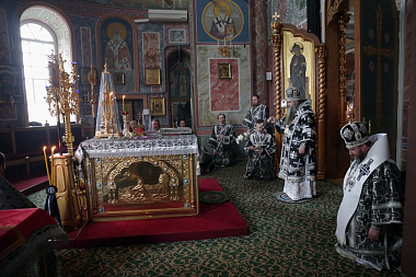 В храме молились настоятельница монастыря игумения Сергия (Конкова), насельницы, многочисленные паломники и прихожане обители.