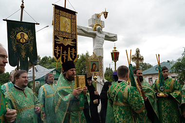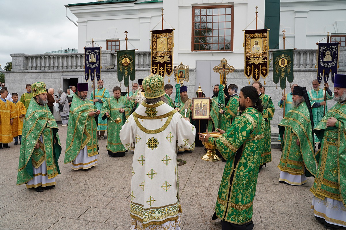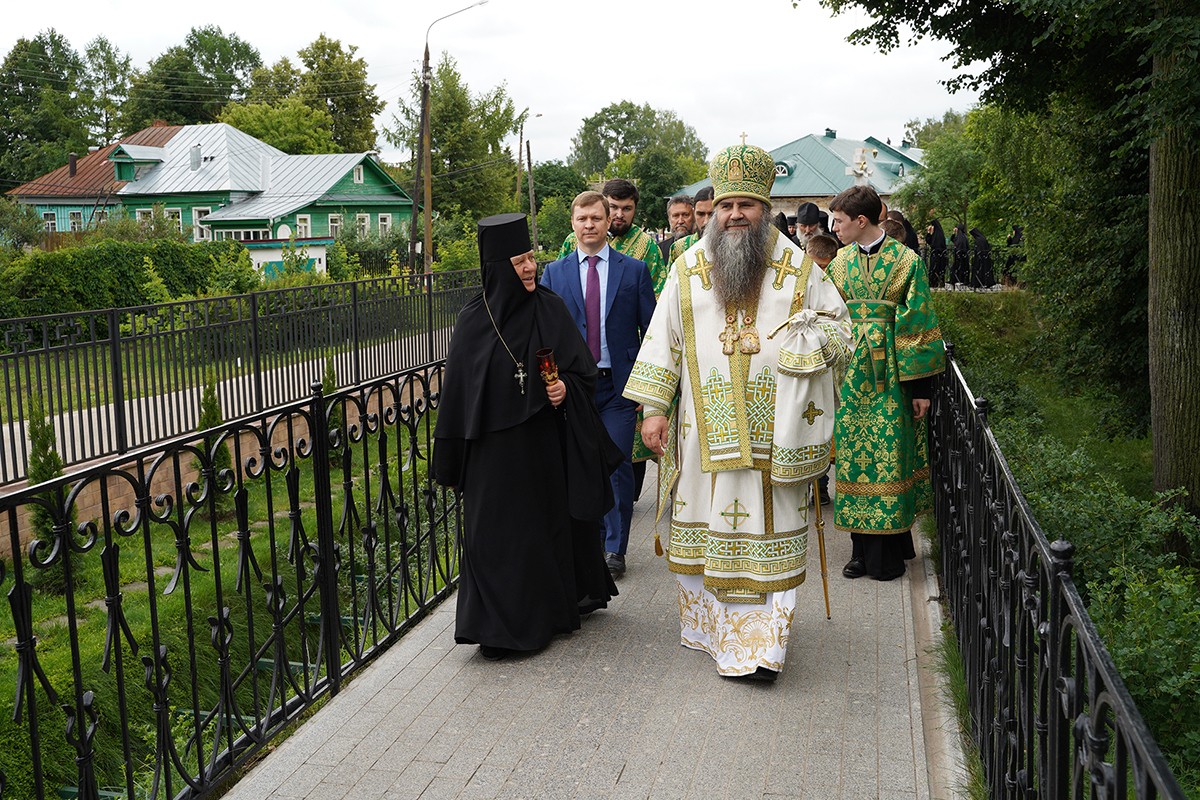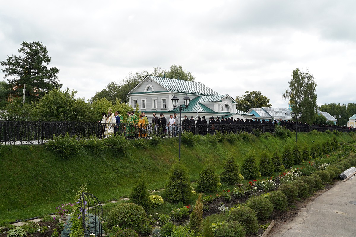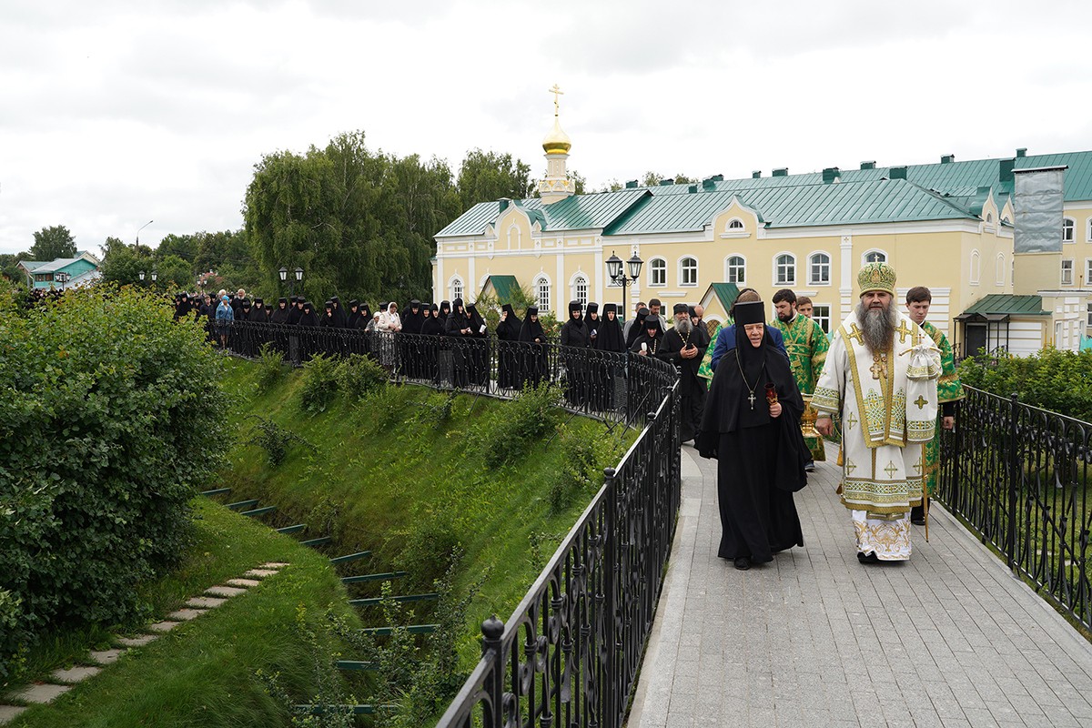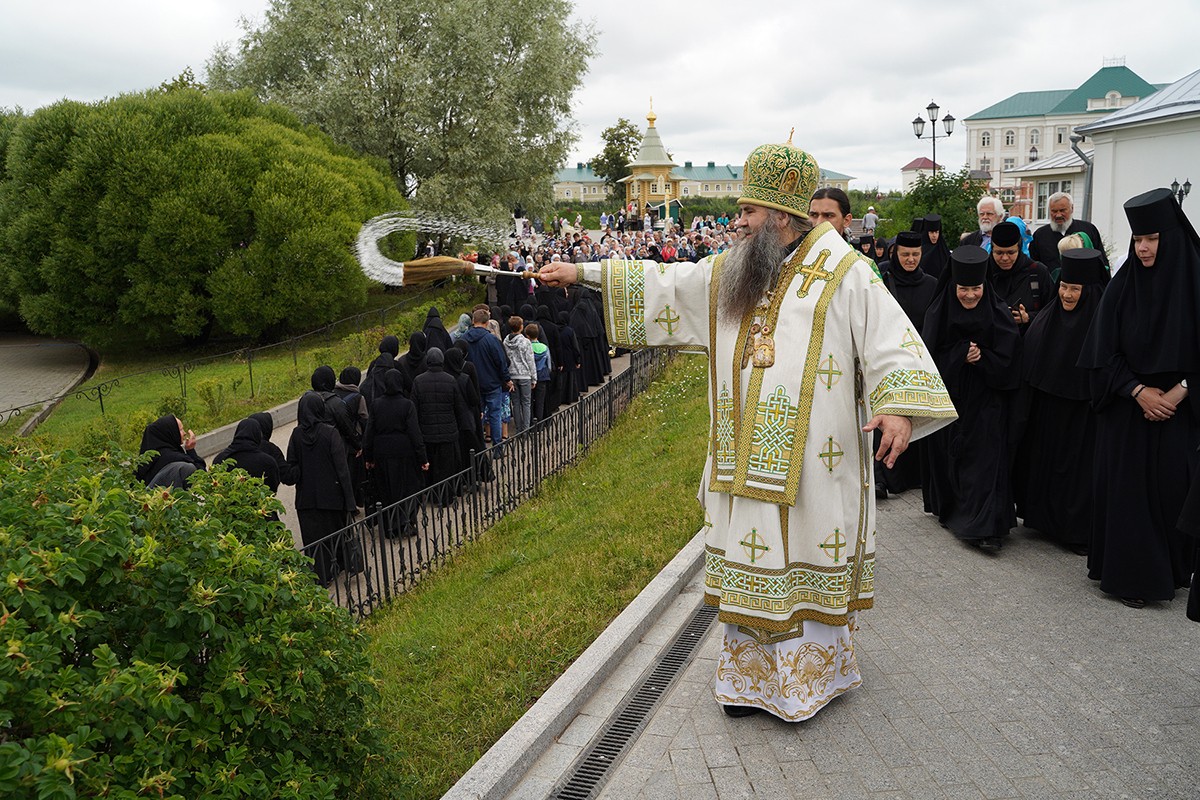 Затем митрополит Георгий с игуменией Сергией, насельницами обители и многочисленными богомольцами прошли крестным ходом по Святой Канавке Божией Матери.